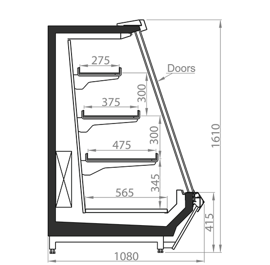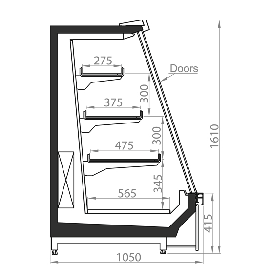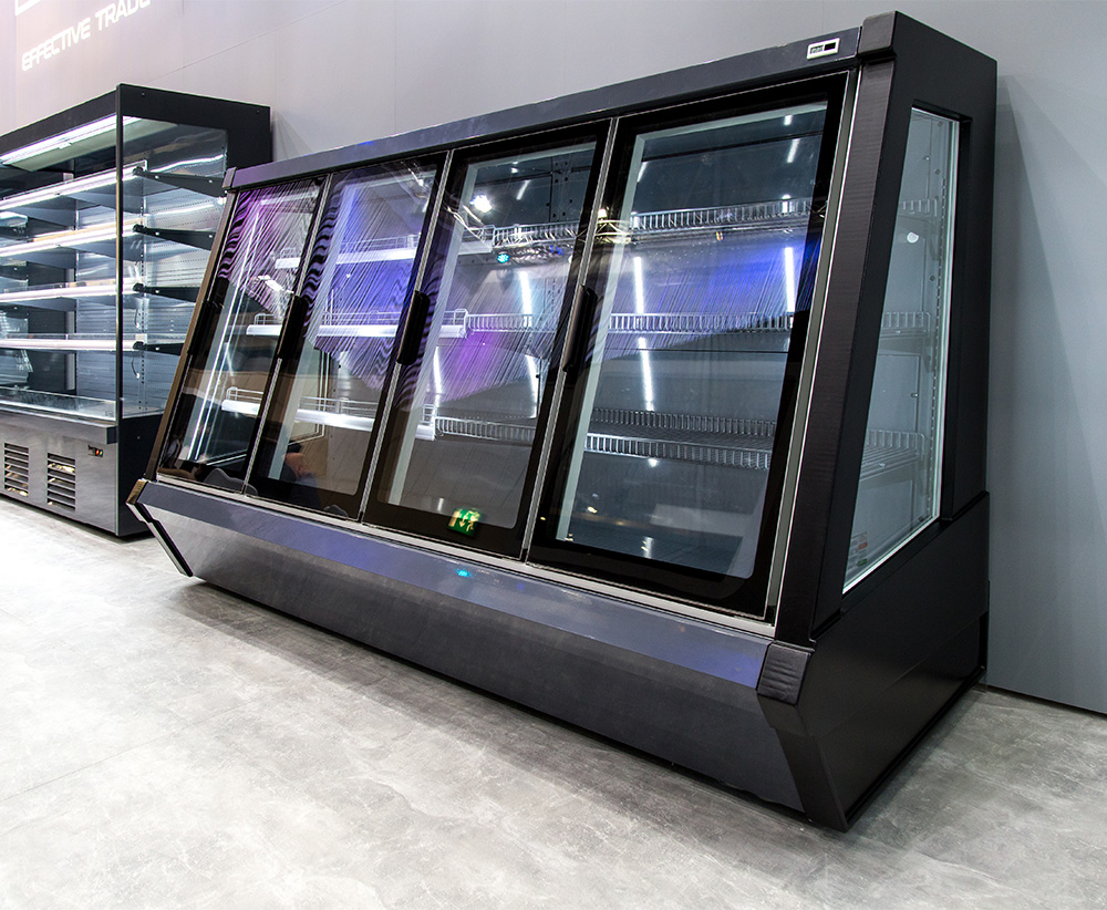 Розкривні скляні двері оснащені обігрівом для запобігання примерзанню та запотіванню.