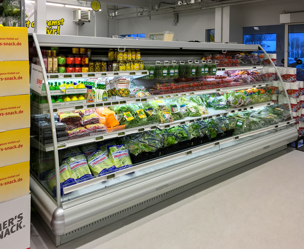 Енергоефективність вітрин Butterfly досягається за допомогою подвійної повітряної завіси у стандартній комплектації або прозорих розсувних дверей опціонально.