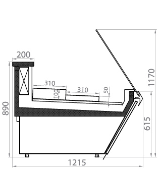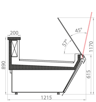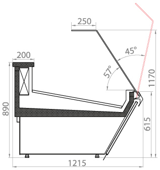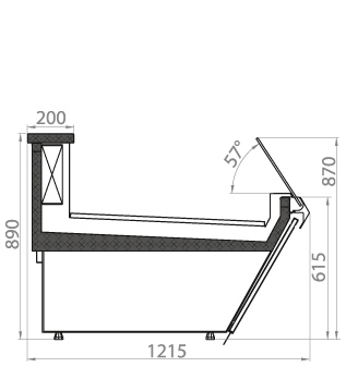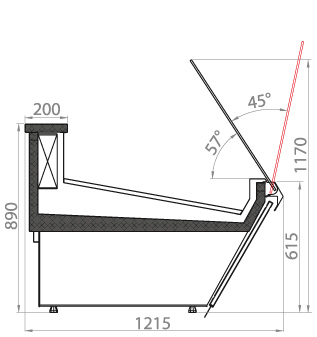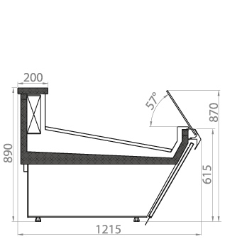 Версія Diagonal Meat з нахиленою експозиційною поверхнею дозволяє покупцю бачити весь товар одночасно під різним кутом зору.