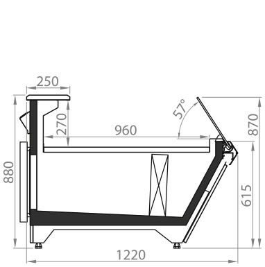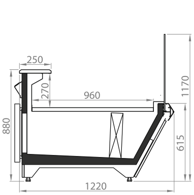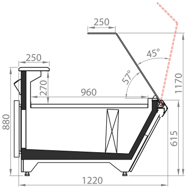 Холодильні середньотемпературні вітрини-прилавки Diagonal SО з додатковою охолоджуваною камерою.