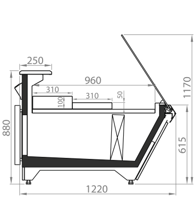 Надійний механізм відкривання скла призначений для зручності обслуговування вітрини персоналом магазину.