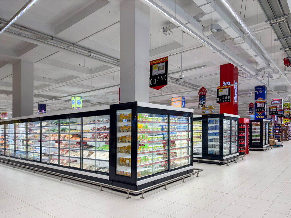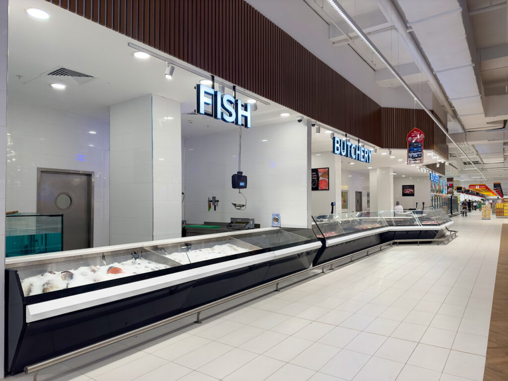 На торгівельній площі 11 тисяч кв.м. встановлено холодильні меблі в комбінації двох ліній дизайну Cube та Diagonal. Головним крітерієм для вибору модифікацій та дизайну обладнання стала ергономіка експонування та огляду кожної категорії продуктів.