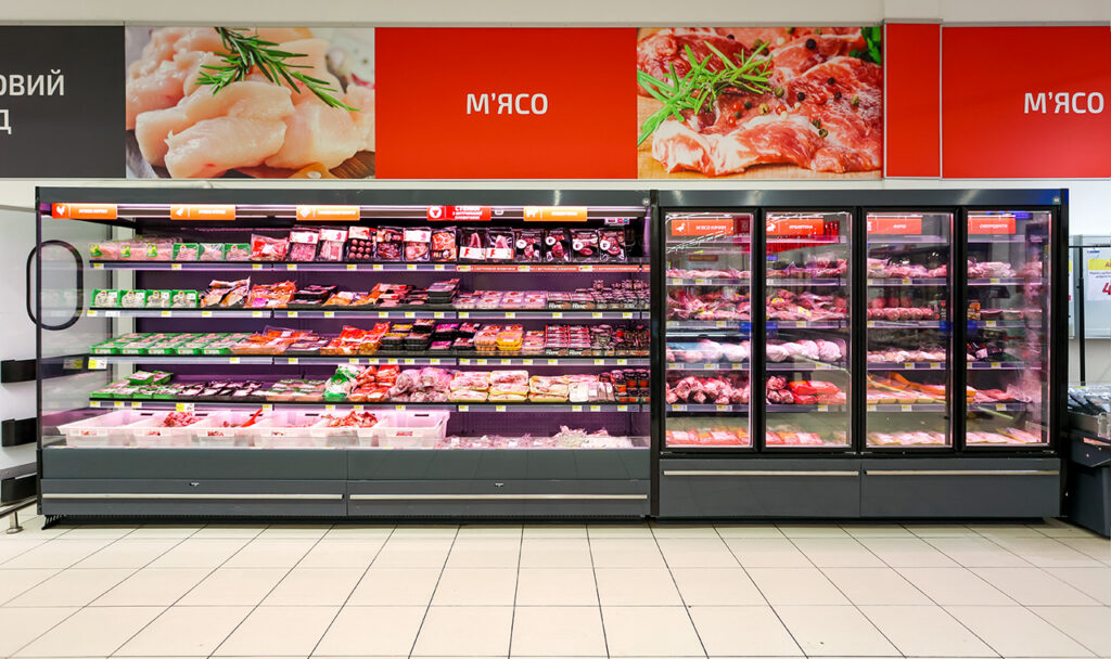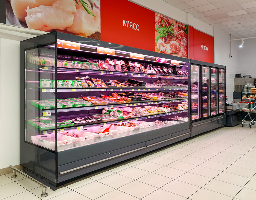 Medusa Meat – спеціалізована холодильна вітрина зі збільшеною холодопродуктивністю та холодильною завісою для кожної полиці для продажу свіжого м’яса в режимі самообслуговування.