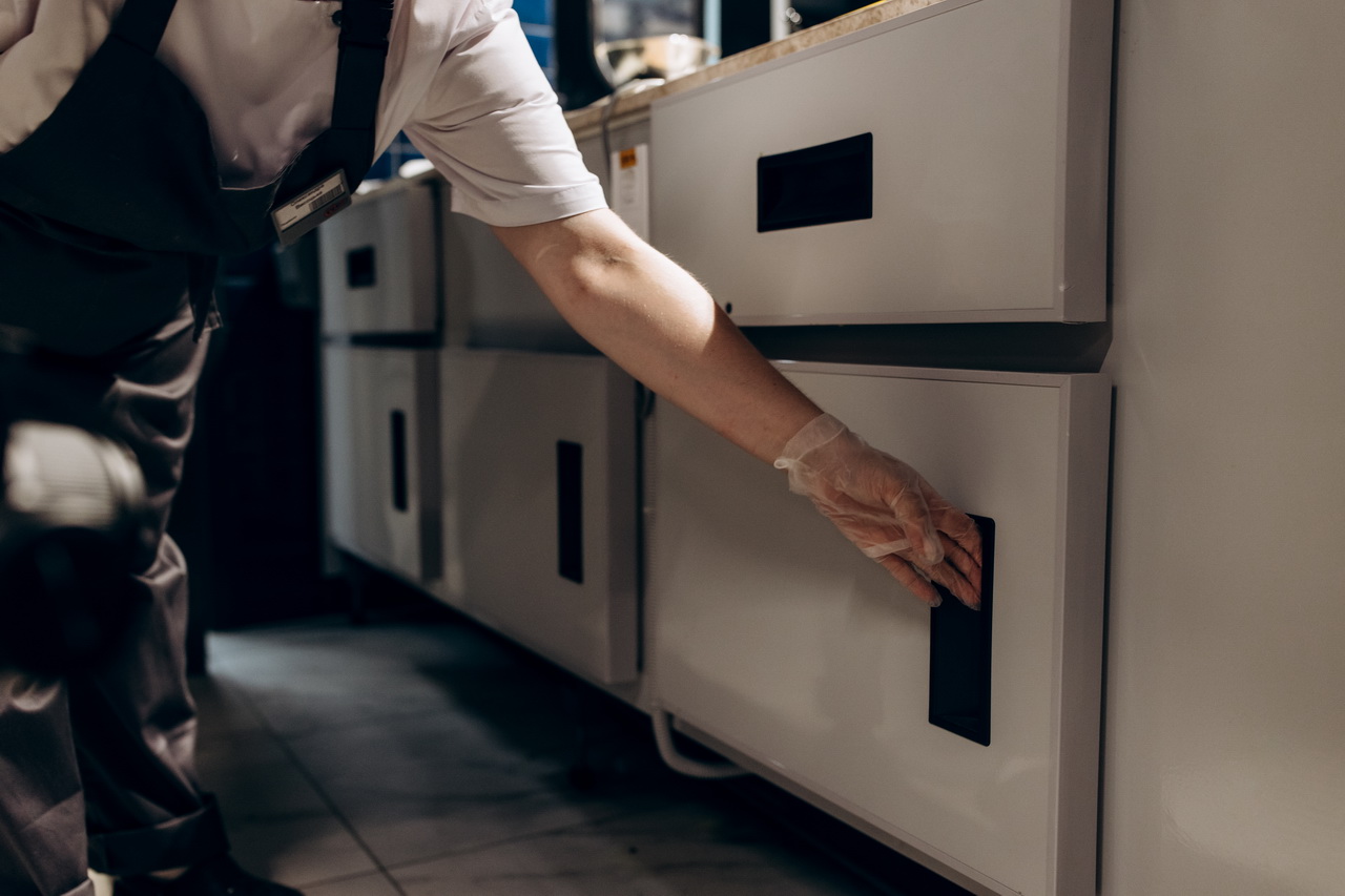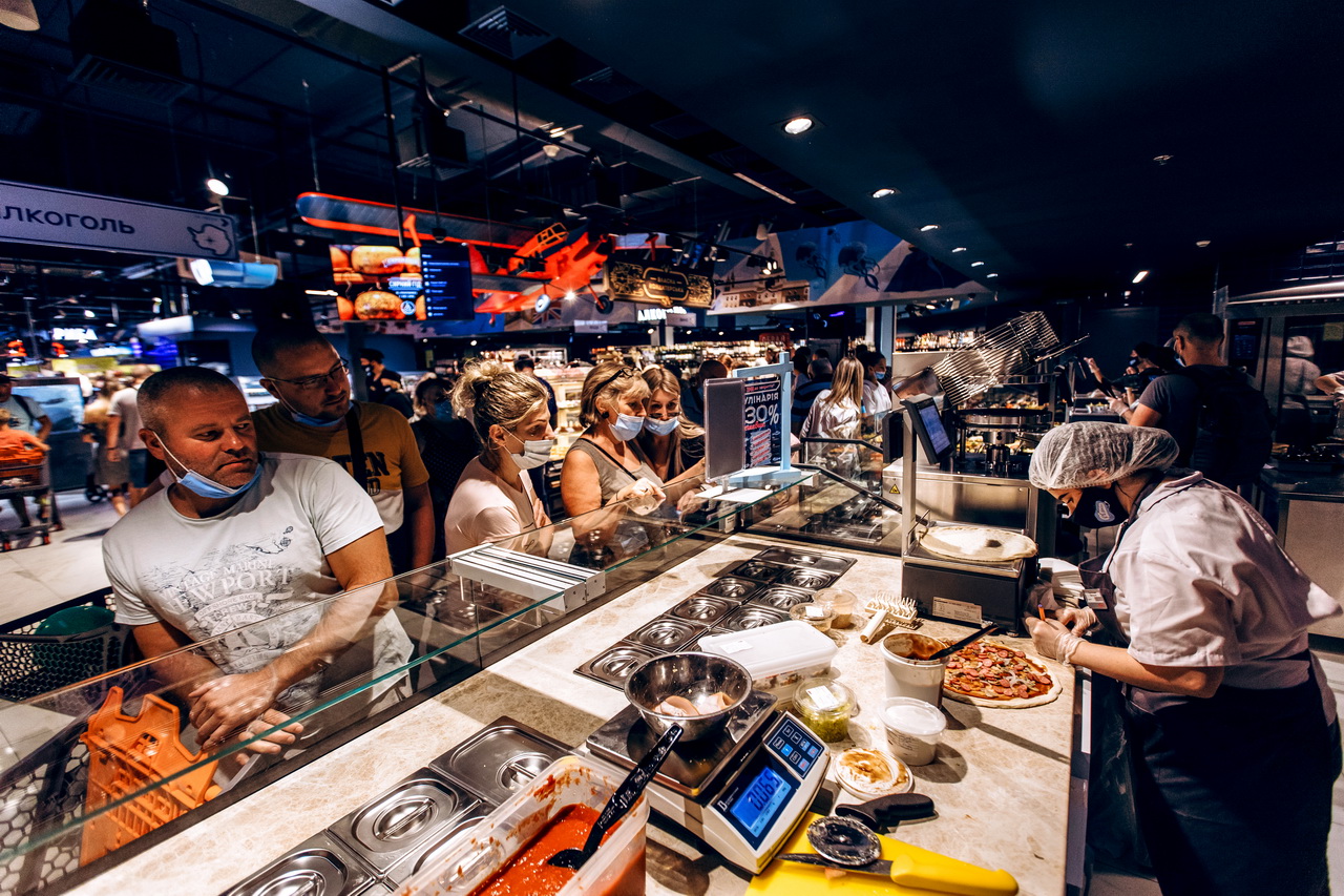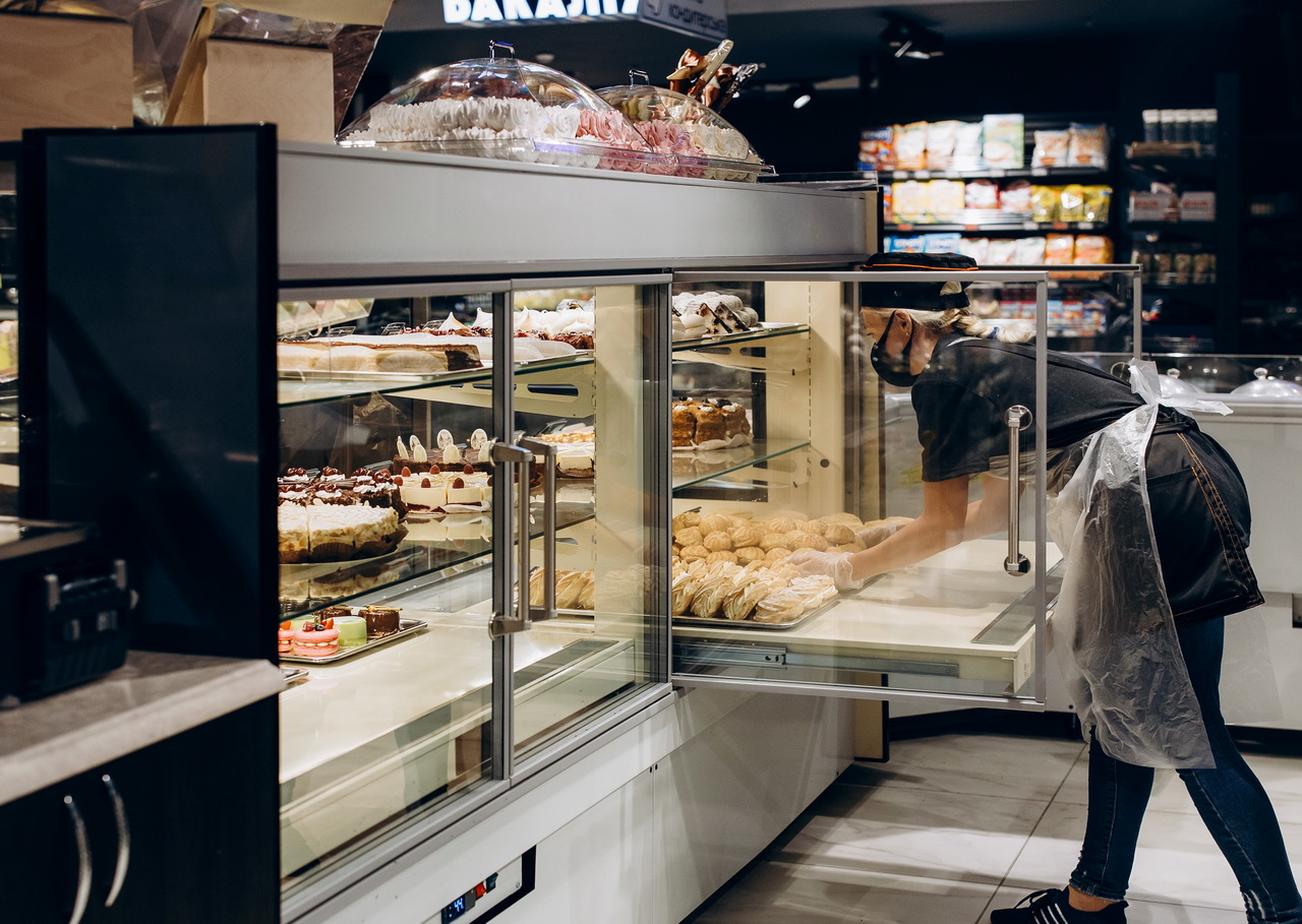 Для приготування свіжої піци на замовлення гостей супермаркету встановлено спеціалізовану холодильну вітрину Cube Pizza з охолоджуваними шухлядами та контейнерами для інгредієнтів та мармуровою робочою поверхнею.