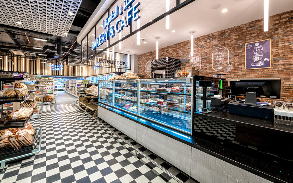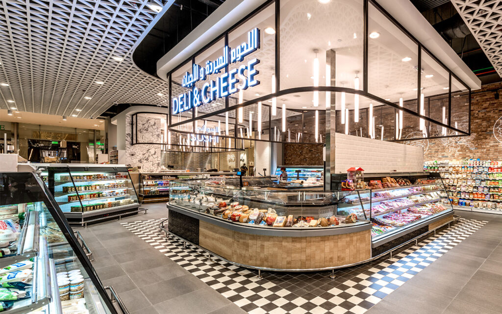 Центром експозиції супермаркету Sultan Center є острів холодильних вітрин в дизайні Cube для продажу делікатесів. Максимальний огляд продуктів у вітринах забезпечено через застосування фронтальних стекол без кронштейнів і стійок. Температурний режим +2/+4 °С. Особлива естетика вітрин реалізована в комбінованій фронтальній обробці з ламінованої ДСП і чорної керамічної мозаїки.