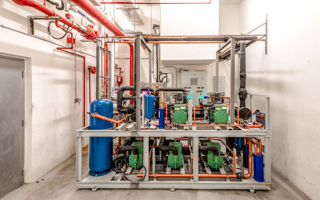 Дворівнева мультикомпресорна холодильна установка Aisberg для супермаркету Sultan Center в Кувейті вбудована в загальну систему оборотного водопостачання.