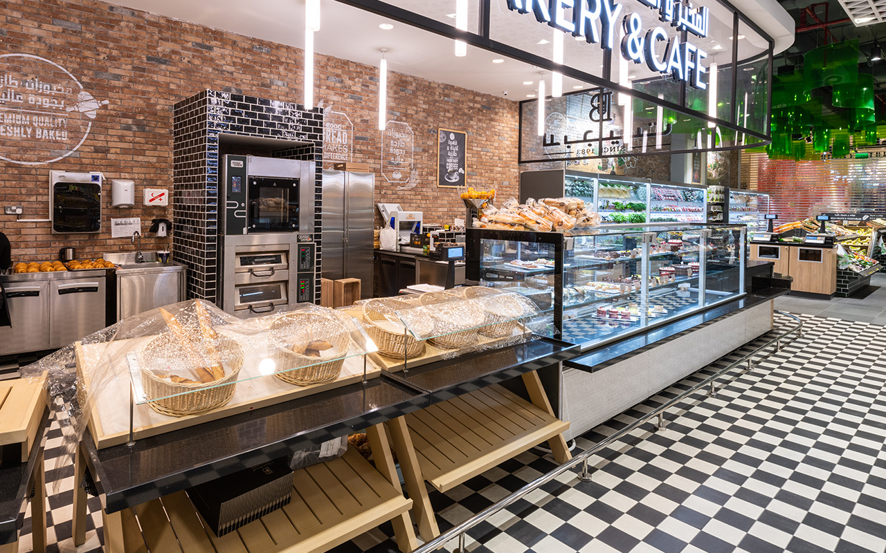 Центром експозиції супермаркету Sultan Center є острів холодильних вітрин в дизайні Cube для продажу делікатесів. Максимальний огляд продуктів у вітринах забезпечено через застосування фронтальних стекол без кронштейнів і стійок. Температурний режим +2/+4 °С. Особлива естетика вітрин реалізована в комбінованій фронтальній обробці з ламінованої ДСП і чорної керамічної мозаїки.