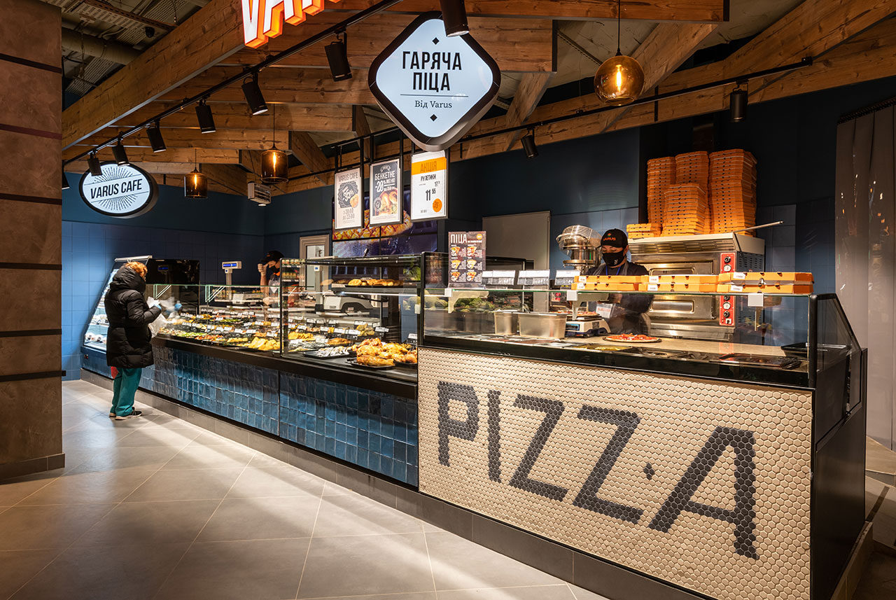 Меню Varus Cafe доповнює смачна піца, яку готує професійний піцайоло безпосередньо в торгівельному залі. Для цього кулінарний відділ Varus оснащено спеціалізованою холодильною вітриною Cube Pizza з дизайнерською обробкою з керамічної мозаїки. Охолоджувана панель для інгредієнтів розміщена на столешні вітрини, щоб покупці обирали та замовляли складові та топінги на свій смак.