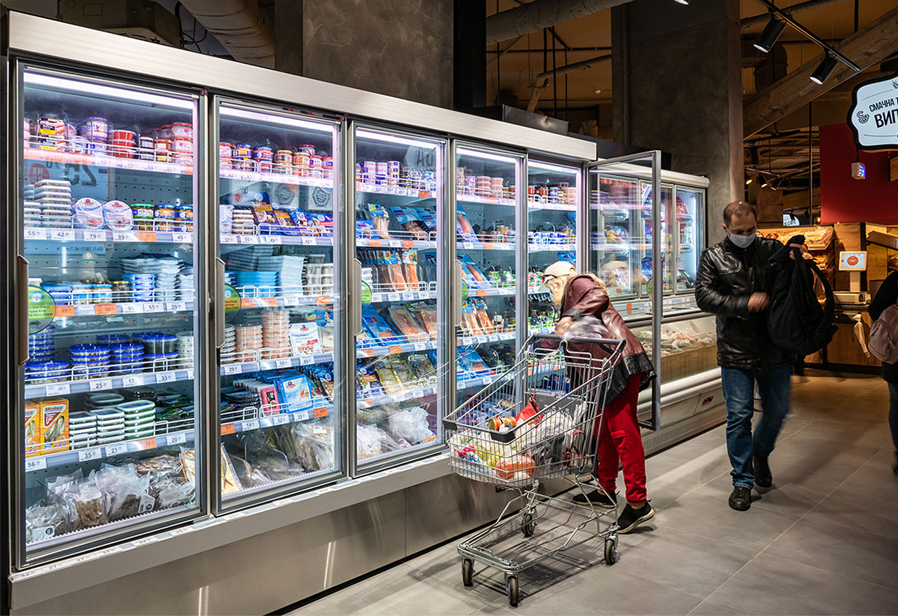 Вертикальны холодильні вітрини Medusa Cube в енергозберігаючій комплектації – з ультратонкими скляними дверима без стійок – забезпечують економію енергії та максимальний огляд товару на полицях.