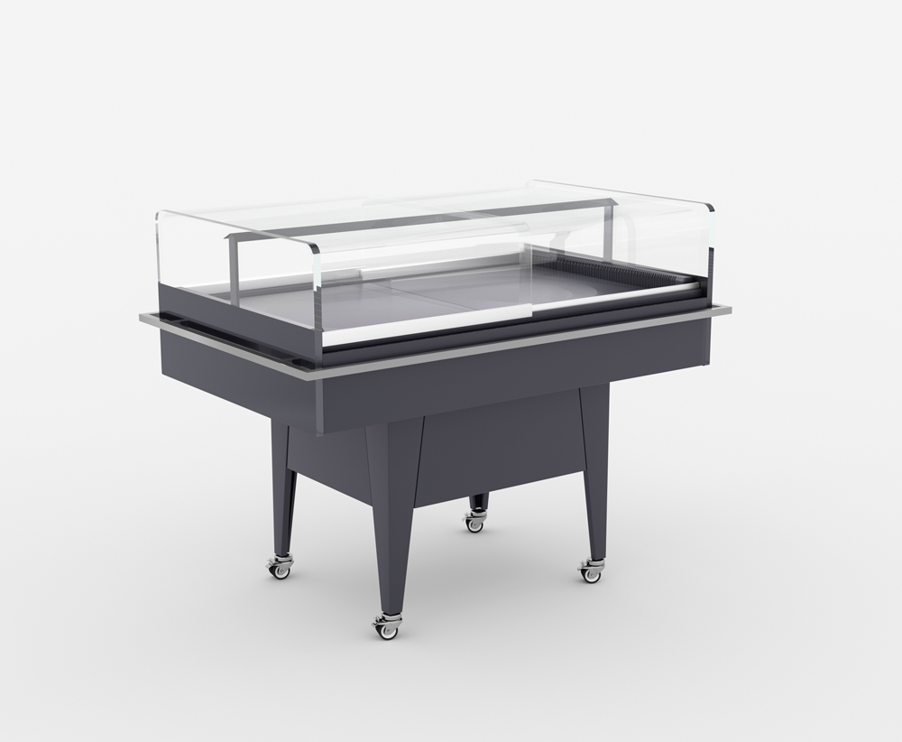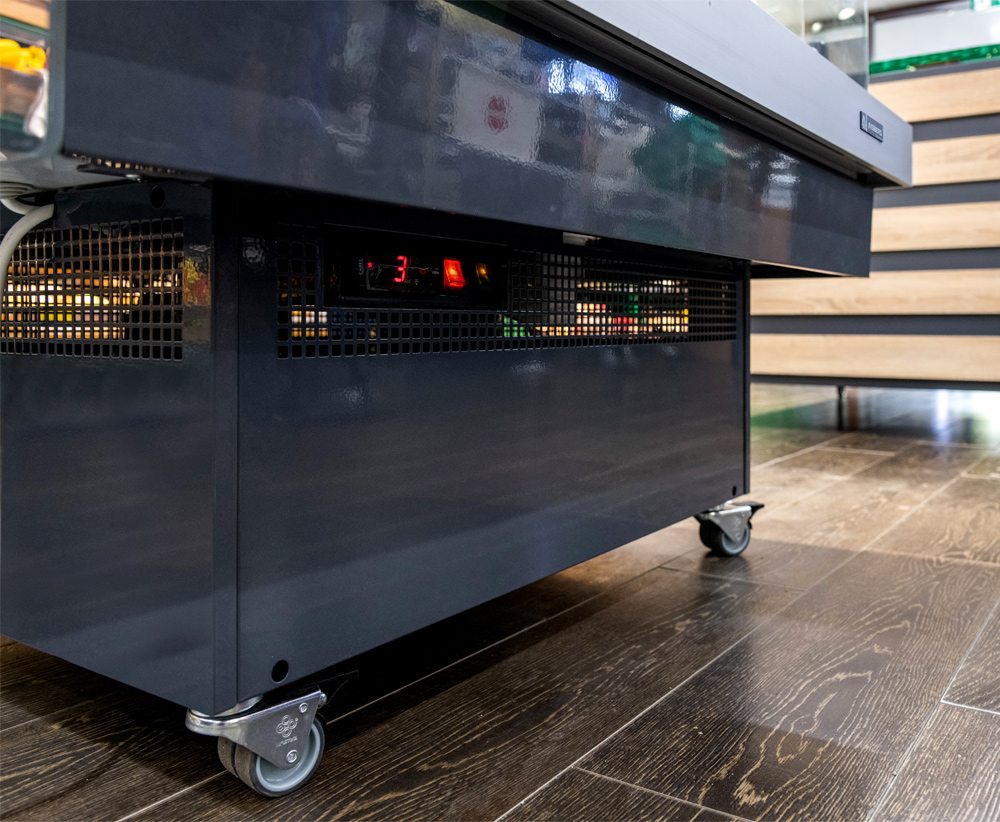 Вбудована система охолодження і компактна конструкція дозволяють встановлювати вітрину Promo Aquarium в будь-якій зоні магазину, де необхідна організація акційного продажу. Надійні поворотні колеса з фіксаторами забезпечують зручне переміщення вітрини.