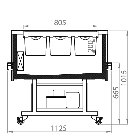 • поворотні колеса з фіксаторами